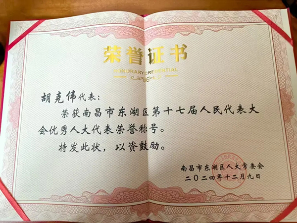 3月17日,東湖區(qū)第十七屆人民代表大會(huì)第五次會(huì)議隆重召開。東湖區(qū)委書記劉光榮出席并講話,區(qū)委副書記、區(qū)長胡俊峰、區(qū)人大常委會(huì)主任陳蘭以及區(qū)委、區(qū)人大、區(qū)政府、區(qū)政協(xié)、區(qū)人民法院、區(qū)人民檢察院、各街道等相關(guān)領(lǐng)導(dǎo)及人大代表共計(jì)180余人參加大會(huì) 。南昌市人大代表、鴻基裝飾集團(tuán)董事長胡克偉作為東湖區(qū)人大常委參加此次會(huì)議,并再次榮獲區(qū)人大常委會(huì)頒發(fā)“優(yōu)秀人大代表”榮譽(yù)稱號(hào)。